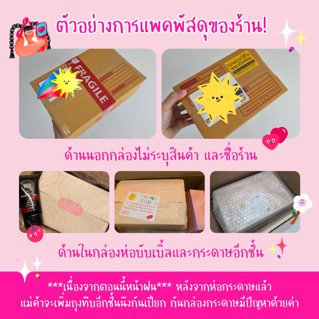 ไม่ต้องกังวลนะคะ ทางร้านแพ็คให้อย่างมิดชิด ไม่ระบุชื่อสินค้า ไม่ระบุชื่อร้าน เนียนๆ แน่นอนค่ะ :)