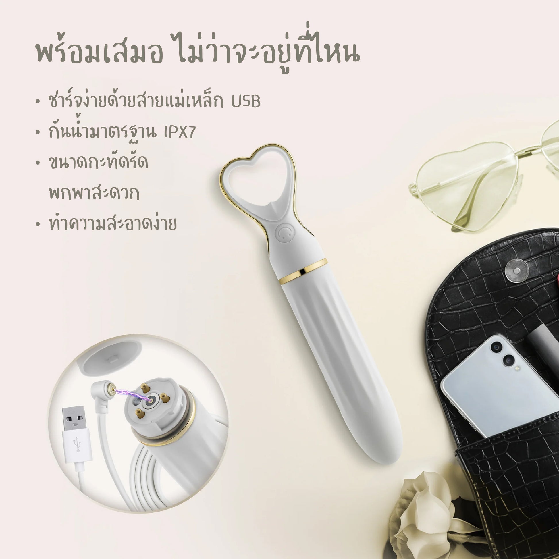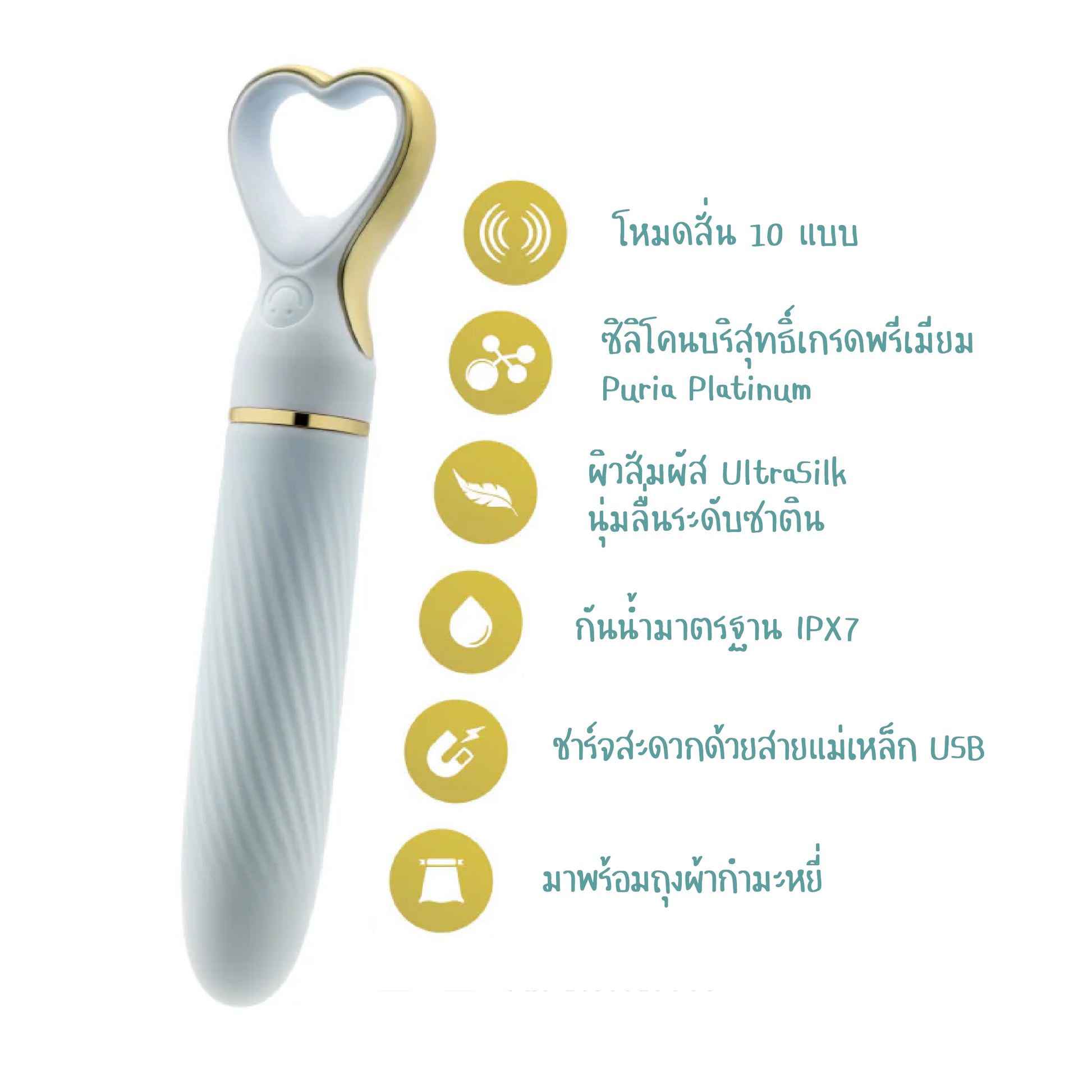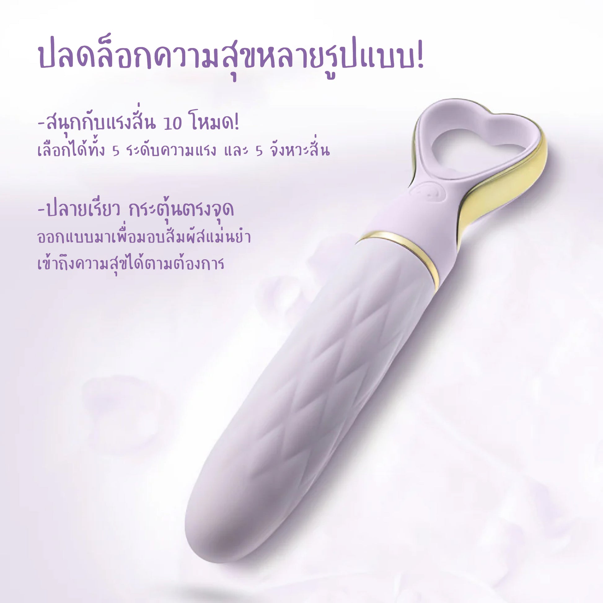 มาพร้อมหัวเรียวลื่นที่ออกแบบมาเพื่อกระตุ้นจุดสัมผัสได้อย่างแม่นยำ มีโหมดสั่นให้เลือกถึง 10 แบบ (5 ระดับความแรง + 5 จังหวะ) สามารถปรับได้ตามต้องการ เพื่อให้เข้ากับอารมณ์และความรู้สึกในแต่ละวัน